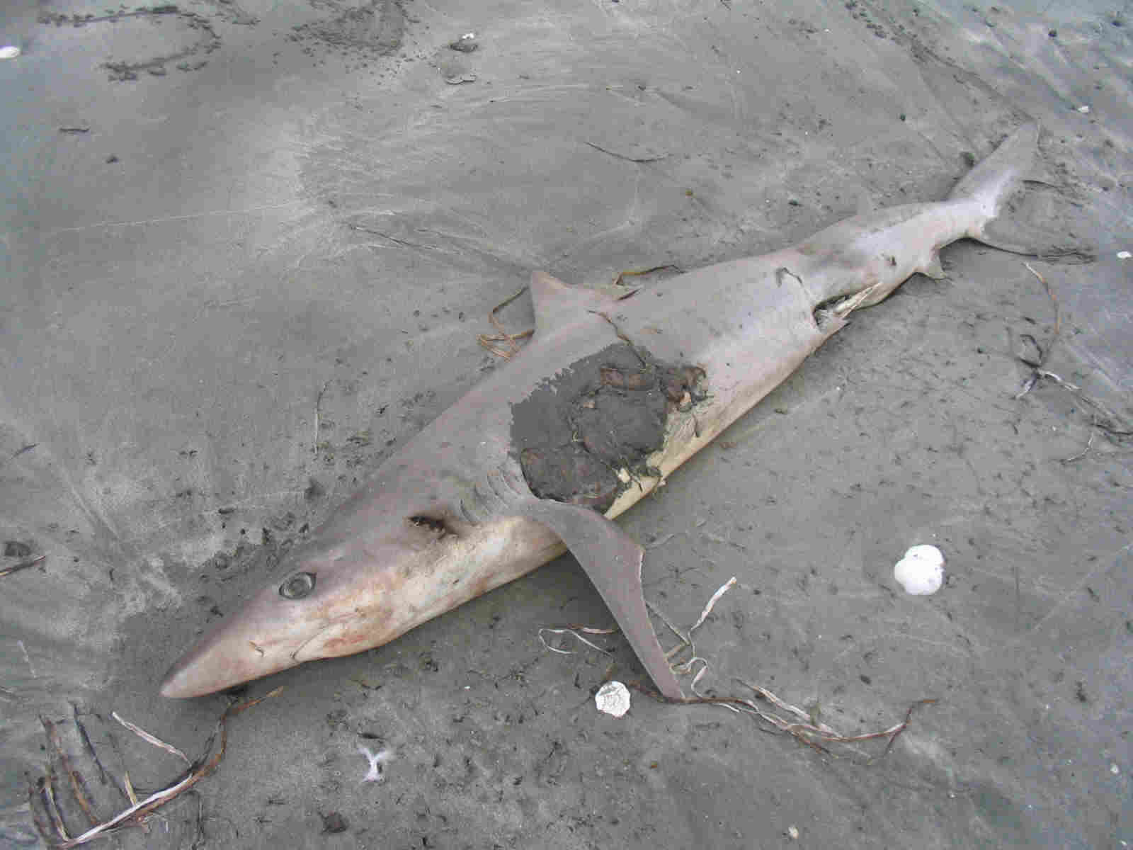 Supposedly, sharks get caught in warm currents that come up to the Charlottes. The currents stop and the sharks get stuck in the cold waters and die. |
