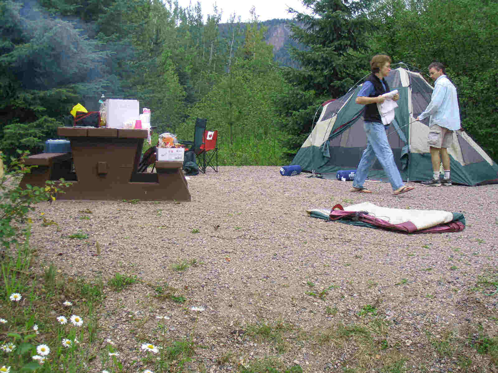 Poured rain all night. That's what tents are for, I suppose, but we still got wet. |
