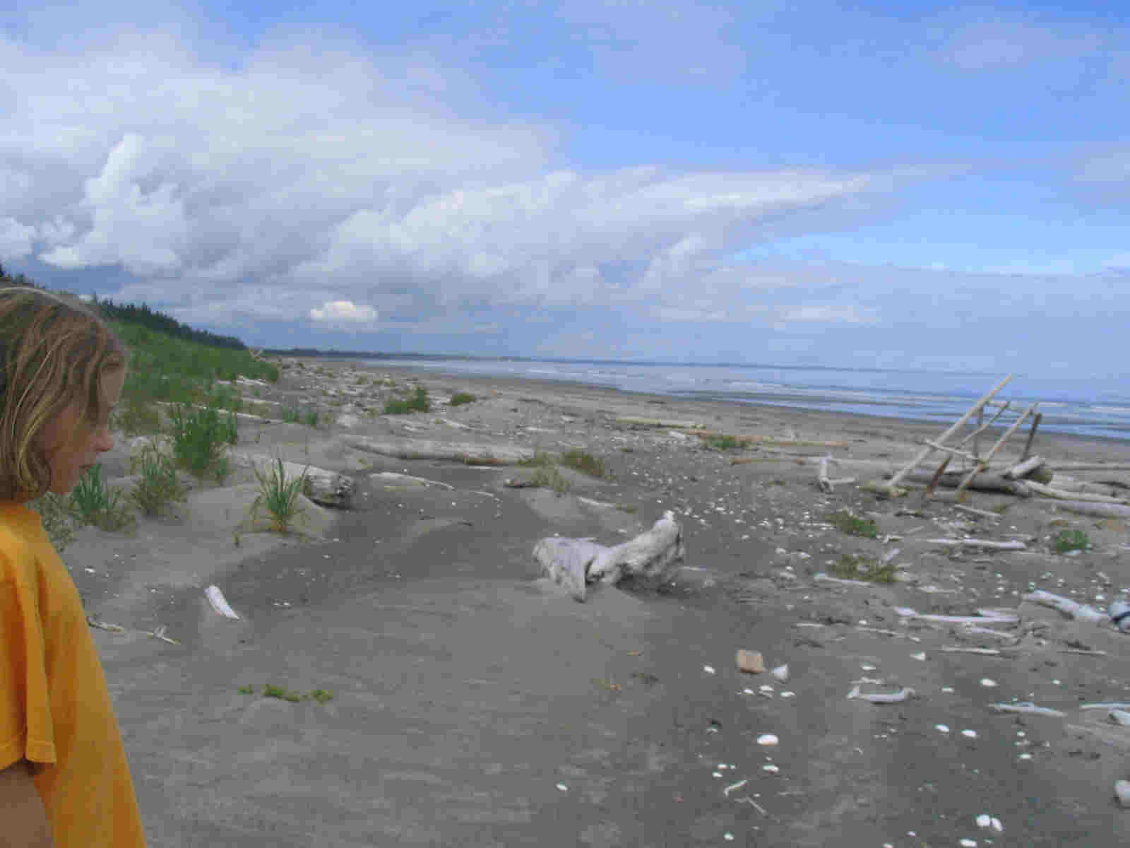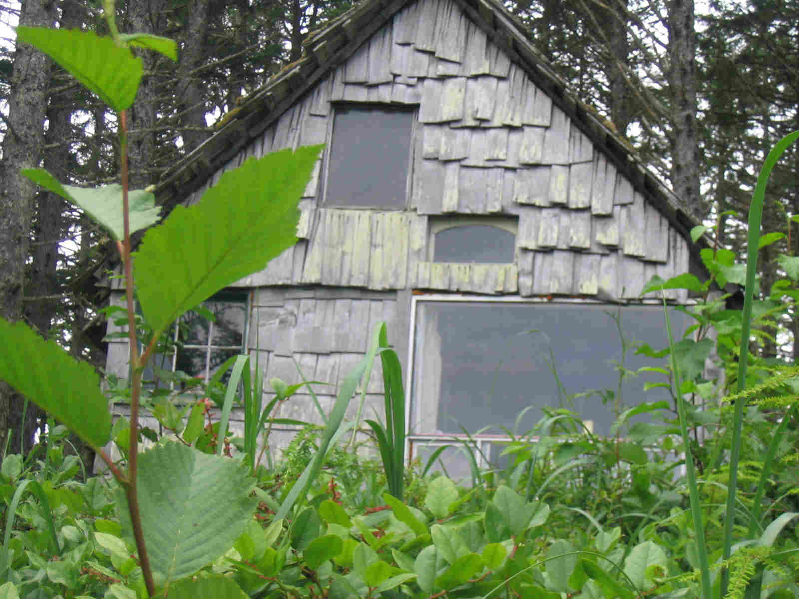 Nice long ferry ride (1pm - 7:30pm). Rich told us about some cabins on the north beach of Graham Island (the north island). We decided to try for it and drove 1.5 hours from the ferry to this cabin.